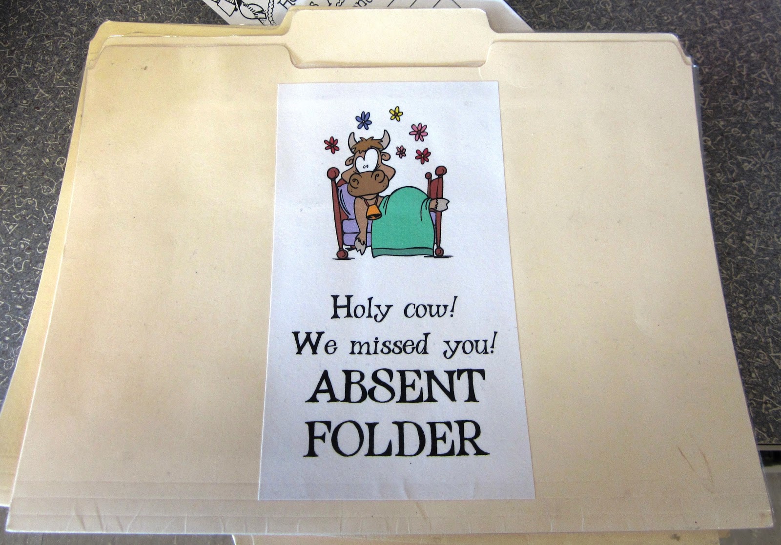 Make 5-7 of these and have a student job (our class “Humanitarian” does this) focused on taking care of absent students. The folder goes on the absent student’s desk, and the humanitarian makes sure all missed assignments, tests, and homework go inside so they’re ready upon the absent kiddo’s return. When a parent comes unannounced to pick up missed work, it’s nice to be able to say there’s a folder ready to go on their child’s desk. If you want to make a little extra effort, the humanitarian can write up a note with any interesting info from the day. I haven’t been able to pull this off successfully, but let me know if you do.