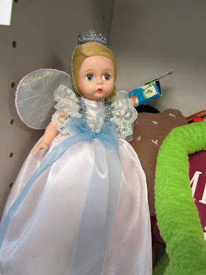As a little girl I accrued a fine collection of Madame Alexander dolls, which now lonesomely stand trapped in my parents’ spare bedroom staring at us when we sleep there during holiday vacations. I did find a practical use for one of them however.