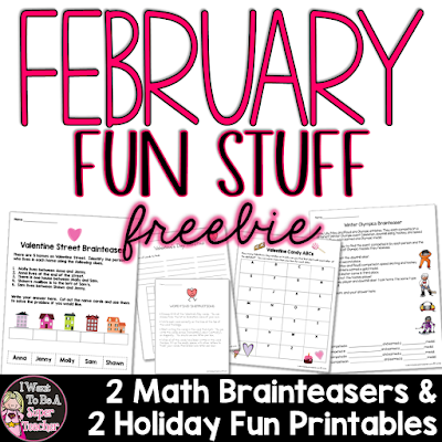 Hi fellow bloggers and blog readers. I just updated my Valentine Freebie pack on TpT if anyone is looking for a few extra items for their valentine parties and/or just a few minutes of solace on Valentines Day. 🙂 It includes Two Math Brainteasers, Valentine Make-Your-Own Word Find, and a Valentine’s ABC Candy Brainstorm activity.