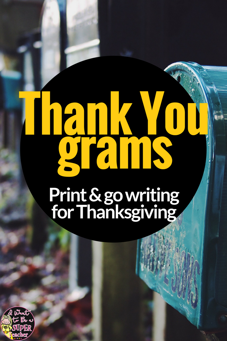 Thank You Grams are simple thank you notes (written on special paper of course) students can write to other students, teachers, or staff. These work wonderfully if you need a writing center or holiday fast finisher that requires very little prep (just make copies and talk with students about being specific in their thanks!).