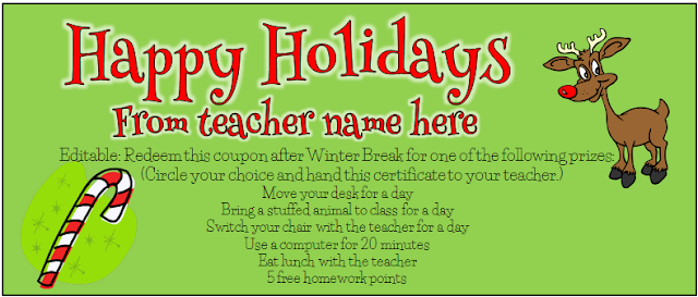 Free Holiday Gift for Students – Editable Holiday Coupons