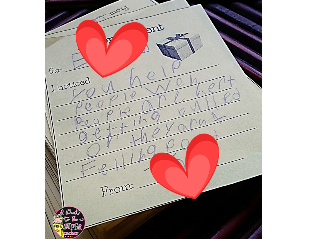 Word to the wise: I ALWAYS read the compliments before delivering them (or letting a student/parent helper deliver them) to RACK sacks. Most of them are so sweet and melt your heart (see compliment above), but a small percentage of students think a backhanded compliment counts as a compliment. As we all know too well – it does not! You do not want a nasty “compliment” going home and to receive an angry parent e-mail on December 23rd, so just read the compliments! If you want to use the same compliments I do, you can get them for free with my Simple Student Holiday Gifts. Easy peasy!