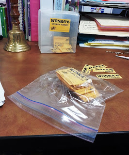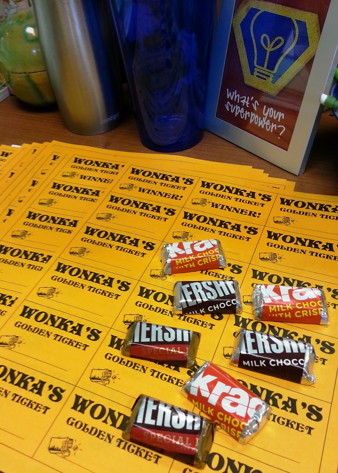Throughout Wonka week(s) these are the new incentives for student behavior. All students who receive a Wonka ticket get to draw from the candy bar jar at the end of the day. If their candy bar is one of the lucky Golden Ticket Winners then they get one of the BIG prizes.