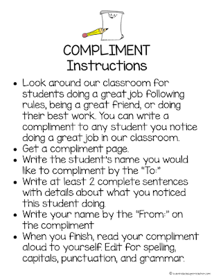 Compliments – This is a great activity for the beginning of the year (and beyond) as the purpose of compliments is for students to build relationships with classmates by looking for positive classroom behaviors. You can keep a compliment bag or jar in the classroom and share these out at class meetings or let students take home compliments from their classmates at the end of the week. Compliments have a clear audience (a classmate) and purpose (to say something kind) for writing. When students know a classmate will be reading them, there is much greater attention to detail and conventions! I recommend keeping track of how many compliments students receive (parent volunteer job!) so no one is feeling left out and blue. {Printables for this activity are included in the exclusive email freebie you can sign up for the the end of this post!}