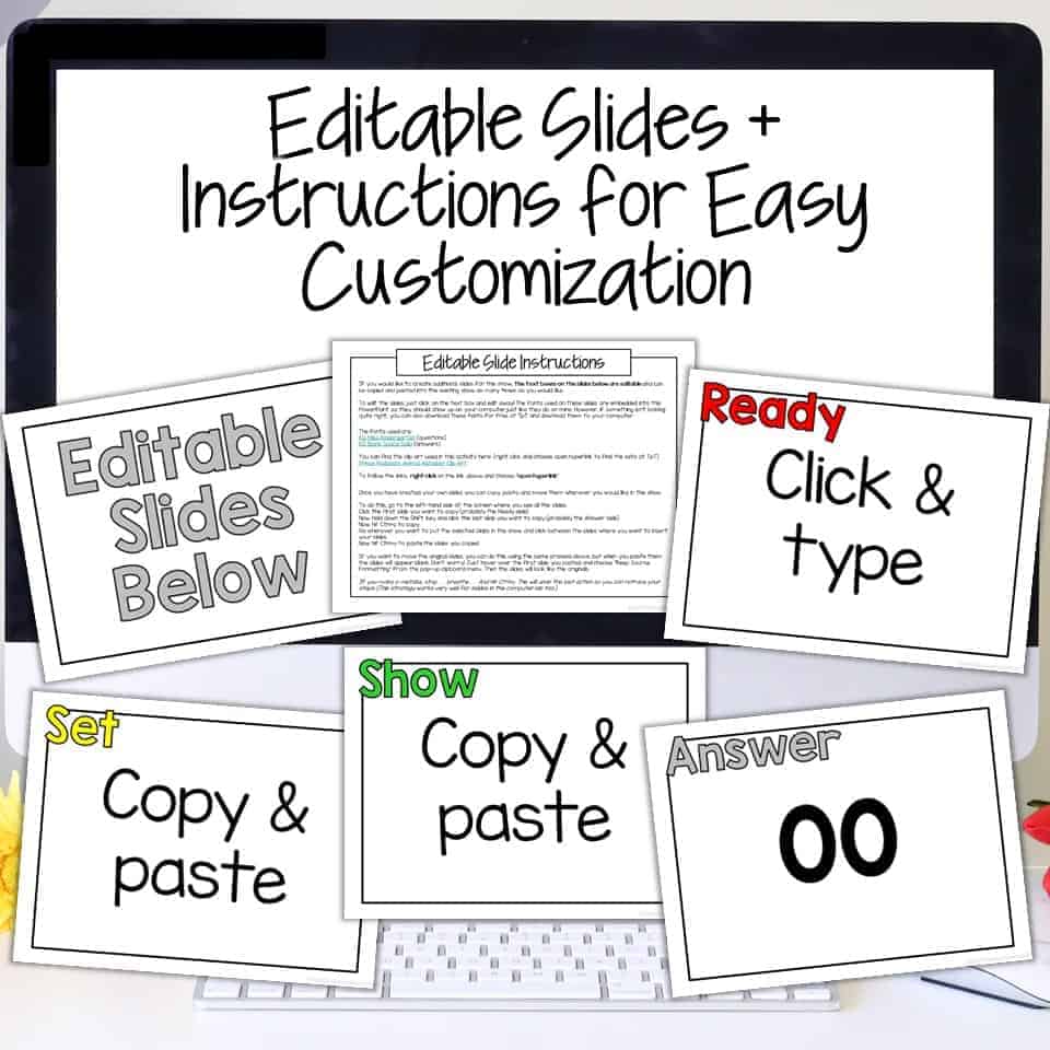 If you would like to make changes to the slide show, the text boxes on the instruction & practice problem slides are editable + there are 4 editable slides included at the end of the show for you to edit, copy, and paste into the existing show so you can reuse this resource.